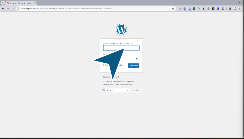Entwicklungsdomain: vallaster.purin.dev/wp-admin Mit dienen Zugangsdaten anmelden. Nach dem anmelden auf die Webseite navigieren. Seite oder Unterseite auswählen (Home/Leistungen/Kontakt)Oben im Fenster,…