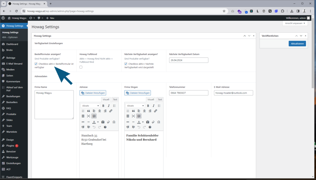 INHALT Bestellfomrular ein und ausblenden Umschalten von Howag auf Fullblood Verfügbarkeit (Datum) anzeigen Datum für Nächste Verfügbarkeit Absenderdaten ändern E-Mail…